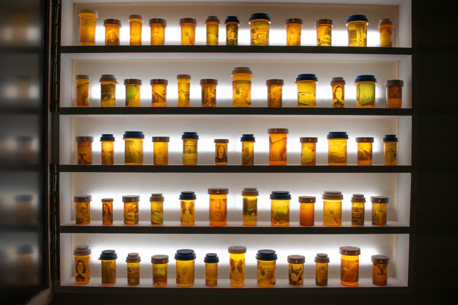 3'x3' medicine cabinet containing 60 pill bottles